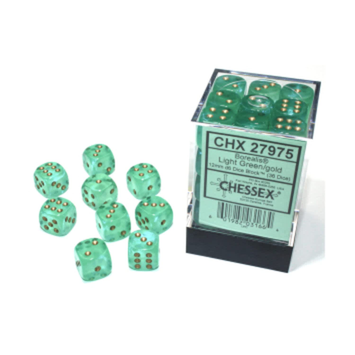 Chessex 12mm d6 Set (36) Borealis Light Green/Gold