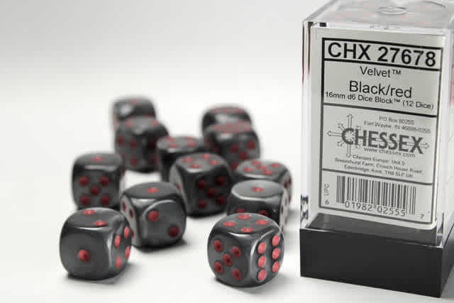 Chessex 16mm d6 Set (12) Velvet Black/Red
