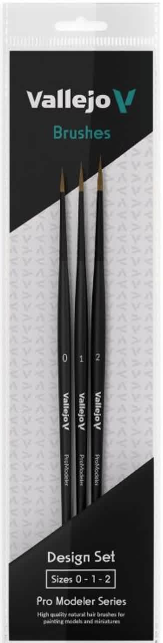 Vallejo Pro Modeler Design Natural Hair Brush Set Round 0 – 1 – 2